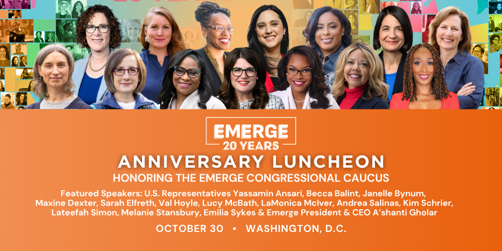 Join us for Emerge’s 20th Anniversary DC Luncheon on October 30th, 2025! We look forward to an inspiring event with all thirteen members of the Emerge Congressional Caucus. We’ll also unveil exciting plans for the future—you won’t want to miss it!